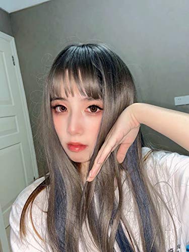 Parrucche da donna con capelli lisci blu cenere sfumato parrucca simulazione capelli Cosplay partito Halloween parrucca costume parrucca (blu cenere)