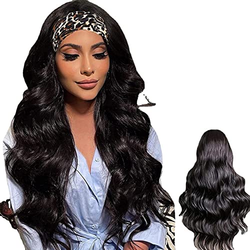 Capelli sintetici di qualità perfetta: parrucca con fascia ondulata lunga in fibra sintetica di alta qualità, densità del 180% rende la parrucca piena, puoi farti un'acconciatura