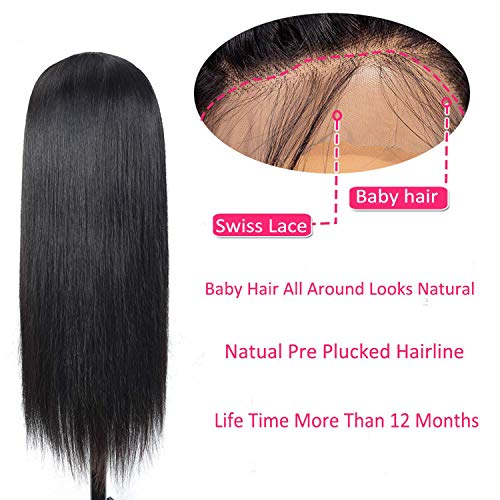Qualità dei capelli:Superiore qualit del comfort Le parrucche anteriori in pizzo 4x4 Densità del 150% 16-28 pollici.parrucche per capelli lisci, le parrucche sono di colore naturale, seta, liscio, tocco morbido, possono essere lavate, tinte, ridisegnate e stirate come i tuoi capelli.