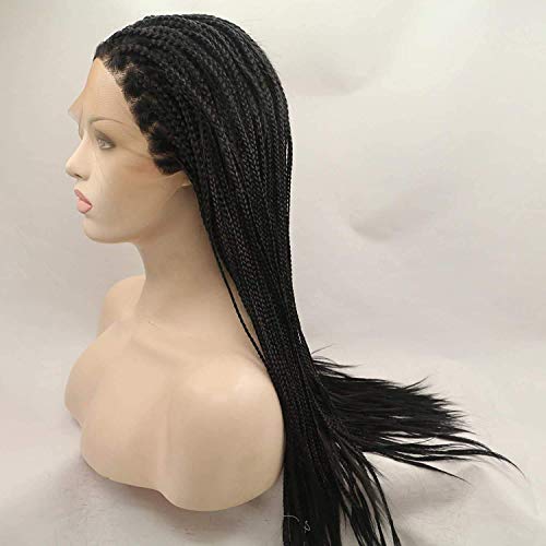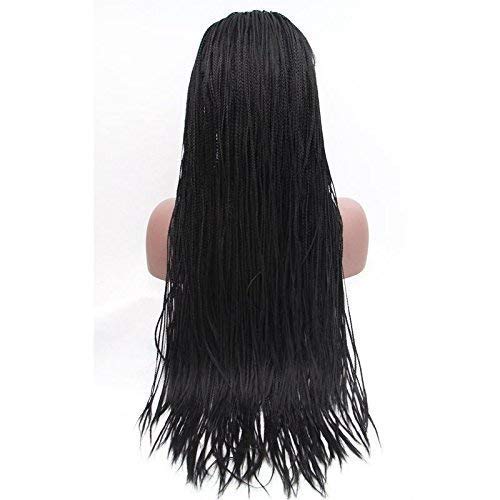 Parrucche intrecciate nere Karissa per donne nere Parrucche anteriori lunghe in pizzo sintetico con capelli per bambini Parrucca lunga a buon mercato Micro scatola nera Parrucca intrecciata per