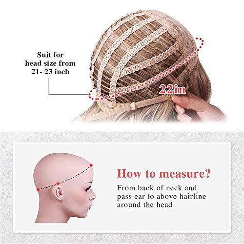 【Cappuccio Regolabili per Parrucca】:la circonferenza della testa 22,5 pollici con due cinghie di regolazione elastica all'interno (estensione 4 pollici) può essere collegata a una posizione fissa per adattare diverse dimensioni della testa. Questa parrucca signora include 2 clip extra per il fissaggio, assicurando la parrucca sempre rimanere in posizione.Non Facile a Cadere.
