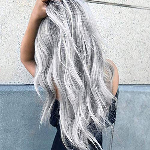 Parrucche ombre nere / grigio argento per donne con parrucche ondulate sciolte grigie ombre nere radicate Parrucca natalizia riccia grigia sfumata da nero a argento naturale Rete per capelli gratuita