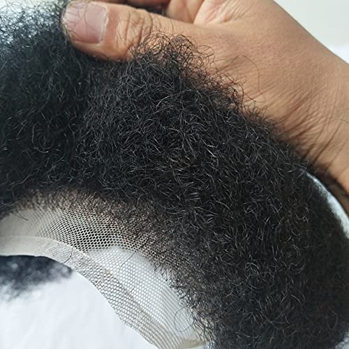 N.L.W. 360 Parrucche di Pizzo Pieno Full Lace Parrucca Uomo per Afro Uomini Sistema di Sostituzione dei Capelli Protesi Capelli Uomo 8×10 Pollici Pelle Sottile 0.06cm Spessore Parrucche in Off Black