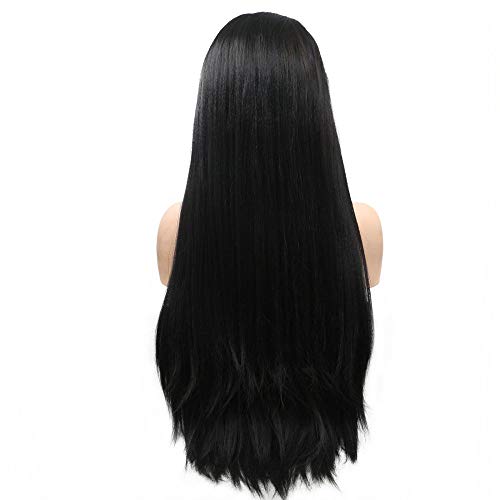 Parrucche nere drag Queen yaki dritto sintetico pizzo frontale parrucche per donne signore Cosplay festa festival usura quotidiana capelli naturale densità 180% 1#/2# colore nero (1#)