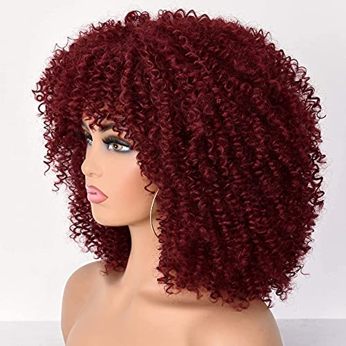 Parrucche afro ricce per donne nere parrucche afro ricci con frangia capelli afro sintetici resistenti al calore parrucca corta riccia (rosso)