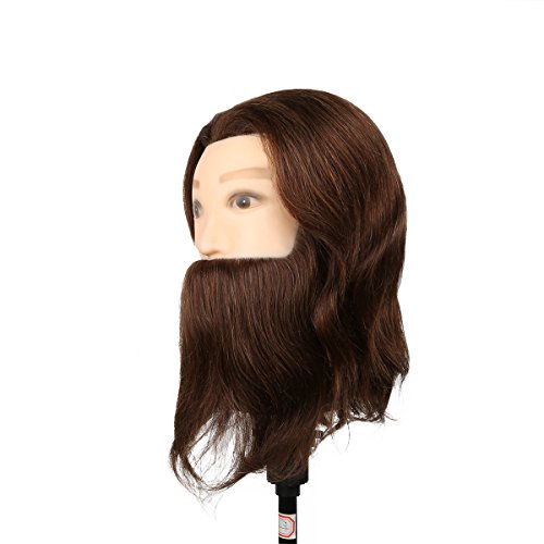 Parrucchiere Mannequin Exercise Man Hairstyle con barba - 80% Capelli Naturali e 20% Capelli Animali per Studio Professionale in Cosmetologia - Marrone - Besmall