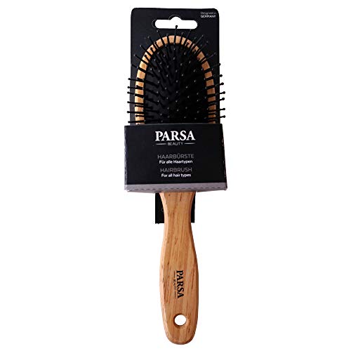 PARSA Beauty - Spazzola per capelli in gomma naturale e legno, grande, di forma ovale con setole in plastica per una buona acconciatura e legno di albero di caucciù