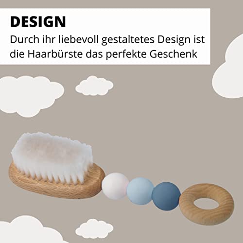 PARSA - Spazzola per la cura dei capelli con capelli di capra in legno di faggio certificato FSC® per la cura dei capelli fini del bambino e del cuoio capelluto sensibile, colore azzurro
