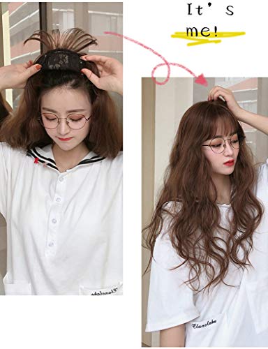 Parte centrale clip in capelli fronte sciolto riccio Topper con frangia 3D ordinata per usura completa testa marrone chiaro