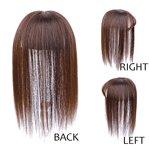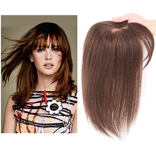 Parte centrale diritta parrucchino con frangia 3D pelle naturale parte design topper con clip per donne che coprono diradamento capelli 15 cm marrone chiaro