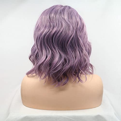 Parte laterale parrucca corta pizzo sintetico resistente al calore per donna parrucca viola lavanda fumé lunghezza della spalla ricciolo rimbalzante senza colla parrucca Bob anteriore pizzo Drag Queen
