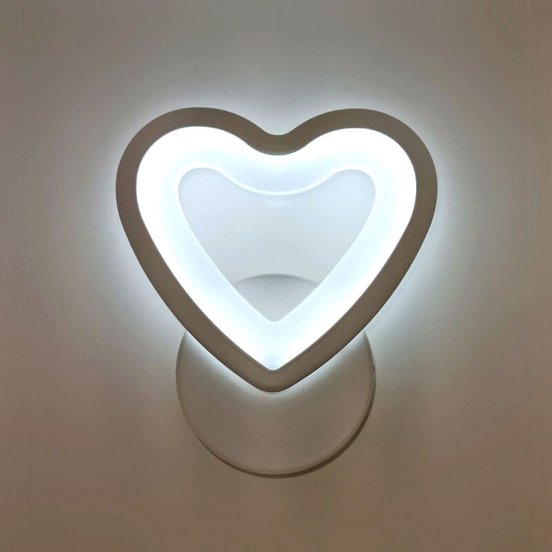 APPLIQUE LAMPADA DA MURO PER INTERNO A PARETE LUCE FREDDA 6500K CUORE CON LED 6W Lampada moderna a forma di cuore da parete con led integrato dalla potenza 6W ideale per l'illuminazione interna di camere da letto - soggiorni - salotti - ingressi - all'interno di negozi - attività commerciali - uffici ed in tutti quei posti dove si vuole installare una lampada dal design stilizzato e moderno. Realizzata in alluminio verniciato di colore bianco con interno del cuore in vetro satinato ha un design adatto per ambienti moderni. Le sue dimensioni la rendono facile da installare, semplice da utilizzare e facile da pulire. Dotata di alimentatore si alimenta a 220V. L' applique è dotato di rosetta con staffa per il fissaggio a parete ed integra morsetti a pinza per un facile collegamento dei fili. L'accensione è immediata La plafoniera ha un angolo di luce diffusa di 300 gradi Disponibile in 3 tonalità di luce: FREDDA 6500K Caratteristiche tecniche: Dimensioni: 18x16 cm Potenza: 6W Flusso