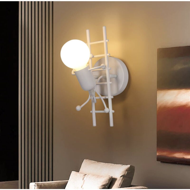 Applique Lampada da parete moderna con attacco E27 forma Omino Bianco su scala Aggiungi uno stile industriale unico al tuo ambiente con le nostre Applique da parete dal design di un omino in metallo. Perfette per arredare il soggiorno, l'ingresso, la camera da letto, oltre a Hotel, B&B e altre destinazioni. Realizzate con materiali di alta qualità, queste applique sono durevoli e resistenti. L'attacco E27 permette un'installazione senza problemi, anche se la lampadina NON E' INCLUSA. L'applique raffigura un omino che sale su scala dimensioni sono 28 cm altezza, 8 cm la scala, 12 cm la piastra a parete La tensione di ingresso supportata è compresa tra 110 e 240V a 50Hz. Con un peso leggero di 350 grammi, l'installazione è un gioco da ragazzi. Non ha pulsante di accensione, va collegato ad interruttore a parete. Per cercare gli altri modelli della stessa serie: Basta andare nel motore di ricerca del nostro sito e scrivere APPLIQUE OMINO