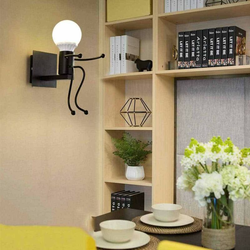 Applique Lampada da parete moderna con attacco E27 forma Omino Nero seduto Aggiungi uno stile industriale unico al tuo ambiente con le nostre Applique da parete dal design di un omino in metallo. Perfette per arredare il soggiorno, l'ingresso, la camera da letto, oltre a Hotel, B&B e altre destinazioni. Realizzate con materiali di alta qualità, queste applique sono durevoli e resistenti. L'attacco E27 permette un'installazione senza problemi, anche se la lampadina NON E' INCLUSA. Scegli il modello che preferisci: omino seduto per una sensazione accogliente o omino che salta per un tocco più dinamico. Personalizza il tuo spazio con il colore che preferisci: Bianco o Nero. Le dimensioni del modello seduto sono: Altezza 18 cm x Larghezza 19 cm x piastra quadrata a muro 10 cm. Se preferisci il modello che salta, le dimensioni sono Altezza 20 cm x Larghezza 12 cm x piastra quadrata a muro 10 cm La tensione di ingresso supportata è compresa tra 110 e 240V a 50Hz. Con un peso leggero di 350