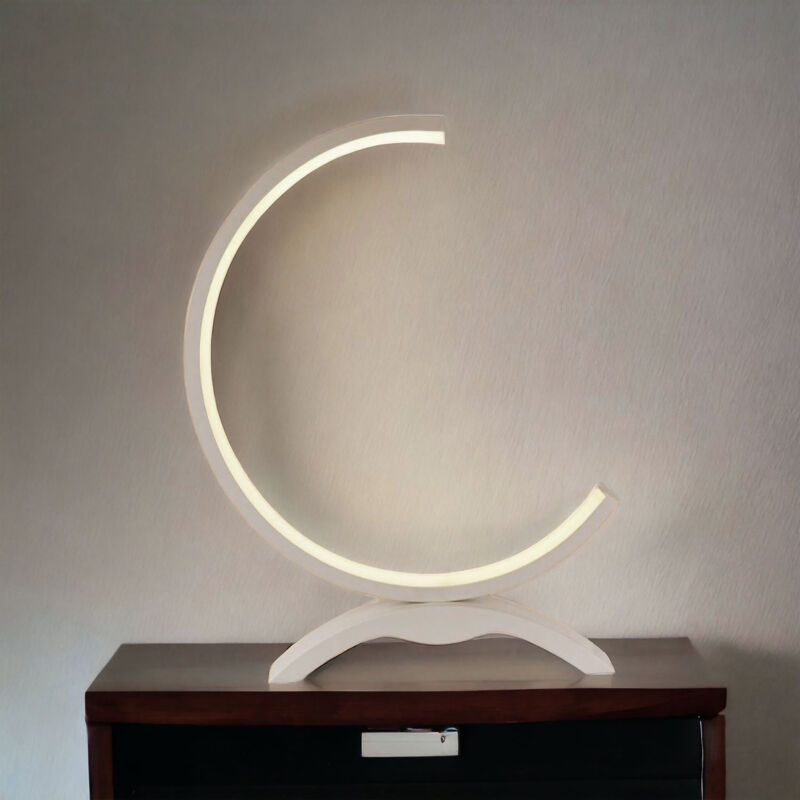 Lampada da tavolo a led abatjour dal design moderno per comodino notturna luce bianca 4000K Informazioni su questo articolo: Lampada dal design moderno con forma di cerchio aperto. Particolarmente indicata per ambienti moderni da posizionare su scrivanie, mobiletti bassi o in camera da letto. Realizzata in vernice di alluminio di colore bianco e in pvc, facile da installare grazie alla base d'appoggio. Dotata di led integrati con una potenza di 9w ed una intensità luminosa di 630 Lumen. Forti di cavo alimentatore e anche interruttore on/off. Dimensioni: Circonferenza 27 cm - Altezza 36 cm - Larghezza 2.5 cm Luce Bianca naturale 4000K