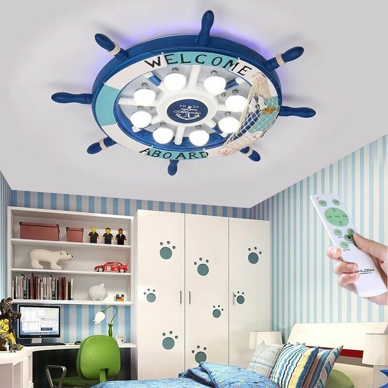 Lampadario Plafoniera a Led da Soffitto Parete Forma di Timone con Telecomando Informazioni su questo articolo Questa plafoniera a LED adotta un design con forma di timone mediterraneo con colore blu per renderlo bello quando è acceso. Questa lampada da soffitto a LED è particolarmente adatta per la cameretta di un bambino o Snack Bar, Ristoranti, case vacanza Mare. Dimensioni e dati: Diametro: 60 cm, altezza: 4.5 cm, sorgente luminosa: LED 41Watt, flusso luminoso: I lumen variano in base alla tonalità impostata: 3280 lumen luce naturale, 1600 lumen per luce calda e fredda. Materiale: metallo + acrilico il LED. Fornisce un'atmosfera accogliente e può essere utilizzato come decorazione. Led integrati non intercambiabili, basso consumo, risparmio energetico. Telecomando dimmerabile: grazie alla funzione dimmer della nostra lampada, puoi regolare la luce calda in base all'umore in qualsiasi momento e in modo molto comodo con il telecomando dimmer in dotazione, che puoi regolare