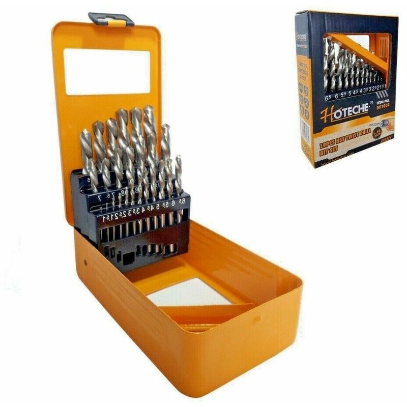 Set di 19 punte per trapano HSS elicoidali da ferro misure da 1 a 10 mm Hoteche Descrizione: Set 19 punte per trapano HSS elicoidali ferro misure da 1 a 10 mm Set da 19 punte HSS elicoidali per trapano. Misure 1, 1.5, 2, 2.5, 3, 3.5, 4, 4.5, 5, 5.5, 6, 6.5, 7, 7.5, 8, 8.5, 9, 9.5, 10 Il tutto racchiuso in una valigetta in metallo per il trasporto