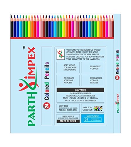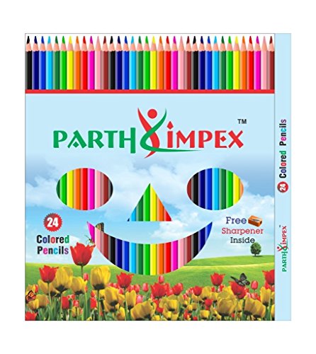 Parth Impex - Set di matite colorate, confezione da 24, con temperamatite, disegnare e colorare