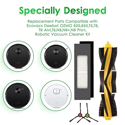 Parti di ricambio per robot aspirapolvere Ecovacs DEEBOT OZMO 920 950 T8 AIVI Max T9 T5 N5 N7 N8+ N8 Pro Plus DX55 93 DJ65 Kit accessori 1 spazzola a rullo principale 3 filtri HEPA 6 spazzole laterali