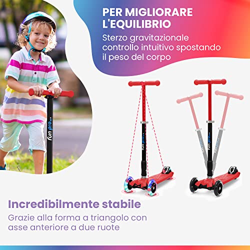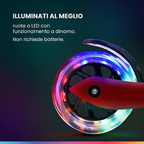 FELICE BAMBINIO: le ruote senza batteria su questo monopattino per bambini a partire dai 6 anni attirano l'attenzione. Le ruote a LED colorate si illuminano in una varietà di colori vivaci e allegri mentre i bambini guidano