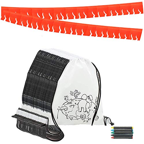 Partituki Regalini Festa Compleanno Bambini 30 Zaini da Colorare e 30 Set di 5 Pastelli a Cera Colorati e Una Ghirlanda (Colore Casuale) di 20 Metri. Regalini Fine Festa Bambini e Pignatta