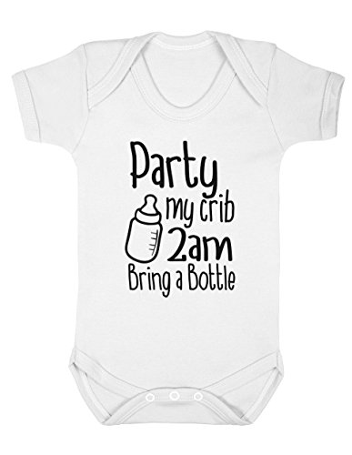 Party My Crib 2 AM Bring a Bottle Baby Boy Girl unisex a maniche corte, bianco (3 - 6 m)