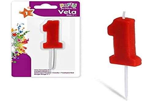 PARTY- Candela di Compleanno Numero 1, 5 x 3,5 cm, Rosso, 68025
