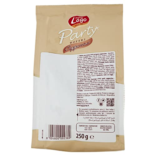 Lago 1968, Party Cappuccino 250g, Wafer con Vellutata Crema Gusto Cappuccino 74% con 5 Strati Friabili di Wafer