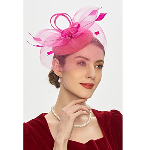 Tea Party Fascinator Kentuckys Derbys Cappello Fascinator Pillbox Cappello Fascia per Cocktail Active Fascia, Rosa acceso, Taglia unica