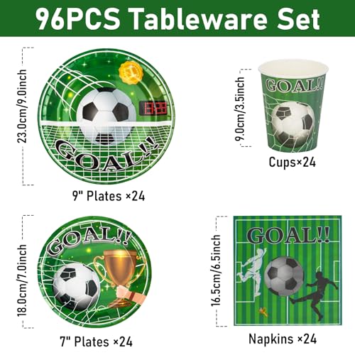 Party Go Set di 96 Piatti di Carta da Calcio, per Feste, per Feste di Compleanno, per Bambini, Compleanno, Ragazze, Ragazzi, 24 per 24 Persone, Verde