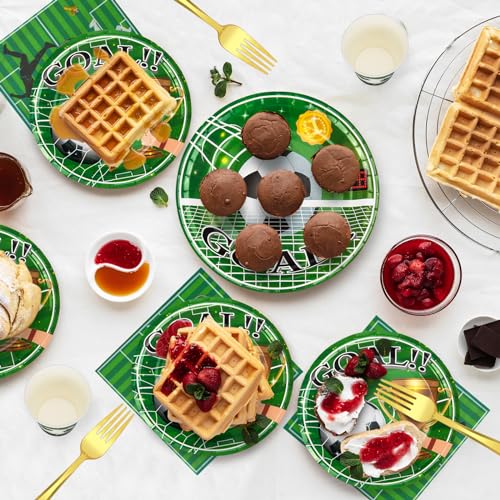 Accessori per feste per 24 ospiti: riceverai un set di stoviglie per feste di calcio che può servire 24 ospiti. Include 24 piatti di carta da 9", 24 piatti di carta da 7", 24 bicchieri di carta, 24 tovaglioli di carta da 6,5", perfetti per feste sportive di calcio e feste di compleanno.