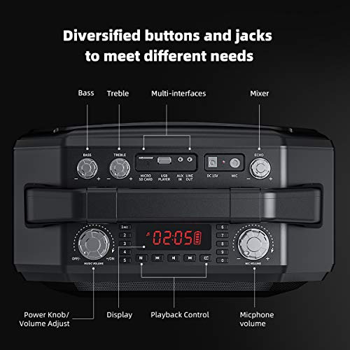 MIFA M520 Party Speaker Altoparlante Bluetooth Boombox con Funzione Karaoke, Microfono Incluso, True Wireless Stereo, Bluetooth, Porte USB, Alimentazione da 100W e Batteria Integrata, Nero