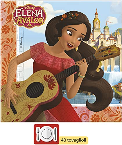 Kit Party Tavola Disney Elena di Avalor per 24 persone (112 pezzi: 24 piatti carta Ø23cm, 24 piatti carta Ø20cm, 24 bicchieri plastica 200ml, 40 tovaglioli carta 33x33cm)