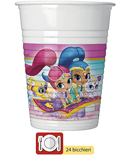 Kit Party Tavola Shimmer and Shine per 24 persone (88 pezzi: 24 piatti carta Ø23cm, 24 bicchieri plastica 200ml, 40 tovaglioli carta 33x33cm)