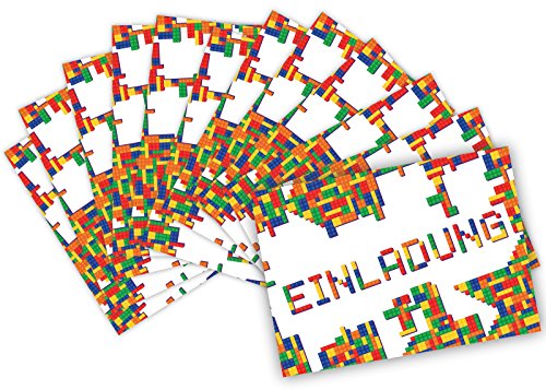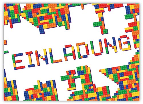 Partycards Confezione da 12 biglietti d'invito per compleanno di bambini per ragazzi o ragazze (mattoni2)