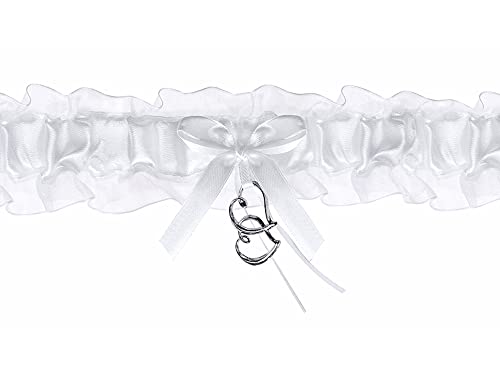 PartyDeco- Giarrettiera con Cuori in Raso, Bianco, Unica, PDW4-008-KARTON