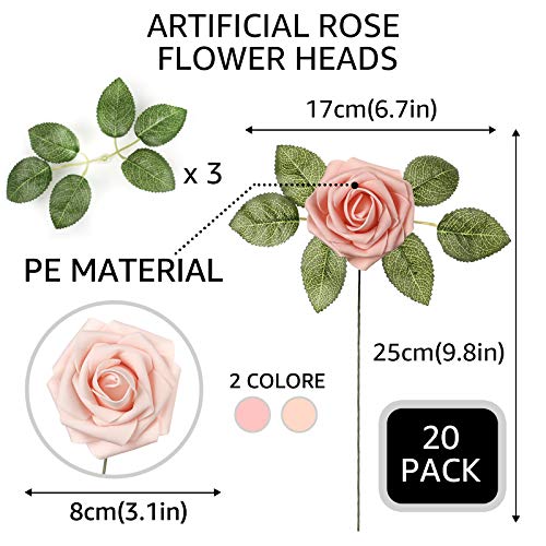 Set di rose artificiali: rose artificiali rosa (10 pezzi), rosa pastello (10 pezzi), per un totale di 20 fiori artificiali, ogni rosa in schiuma ha un diametro di circa 8 cm, ogni fioriera misura circa 18 cm di lunghezza e può essere piegato in qualsiasi forma a piacimento (3 set di fogli sono inclusi)