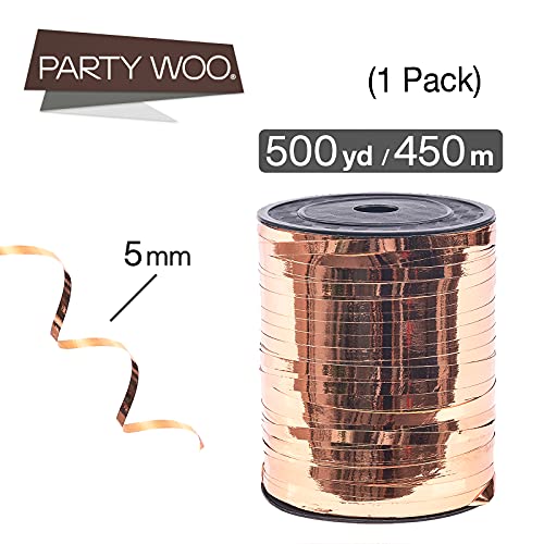PartyWoo Oro rosa, 1/5 cm x 500 m Curling Crafts, ondulato iridescente, confezione regalo metallica lucida, nastro per palloncini, capelli, fiore fiorista (1 rotolo)