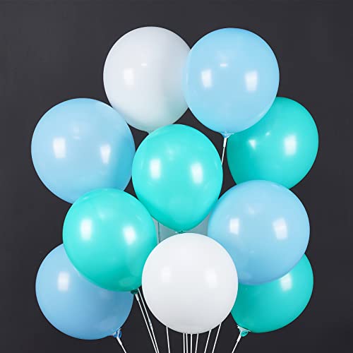 PartyWoo Palloncini Blu e Bianchi 60 pezzi 10 pollici Palloncini Verde Acqua Palloncini Turchesi Palloncini Blu Palloncini Bianchi per Bambini Decorazioni Baby Shower, Baby Shower Blu