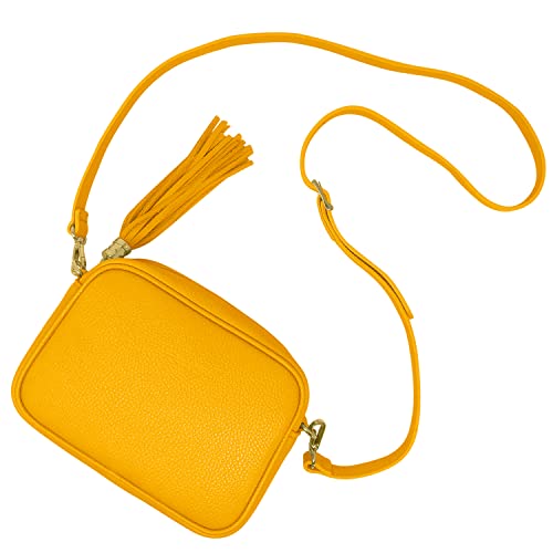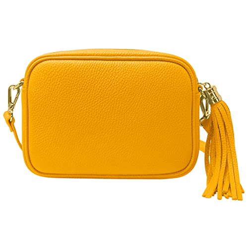 Parubi, Borsa Donna a Tracolla, In Vera Pelle Grana Dollaro, Modello Anastasia, Piccola con Frange PochetteDa Ragazza, Giallo