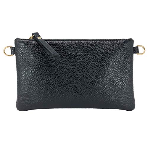 Parubi, Borsa Donna a Tracolla, Pochette a Mano, In Vera Pelle Grana Dollaro, Made in Italy, Modello Gaia, Borsetta Nera Piccola Clutch Da Donna Ragazza Elegante, Colore Nero