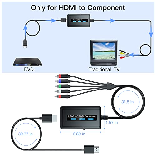 PARUIEN 1080P Convertitore da HDMI a Component con Funzione di Ridimensionamento, Adattatore da HDMI a RGB Scaler, Convertitore da HDMI a YPbPr + R/L Audio Compatibile con DVD/PS3/PS4/TV Stick