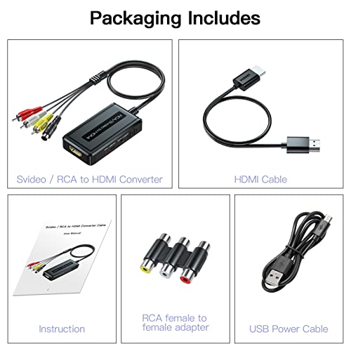NESSUN ACQUISTO EXTRA NECESSARIO - Forniamo tutti gli accessori nella confezione: 1 x convertitore RCA Svideo a HDMI + 1 x adattatore RCA femmina a femmina + 1 x cavo HDMI + 1 x cavo RCA + 1 x cavo Svideo + 1 x Micro USB cavo di alimentazione +1 x istruzioni. Non è necessario spendere soldi extra per l'acquisto di cavi. Risparmia tempo e denaro.