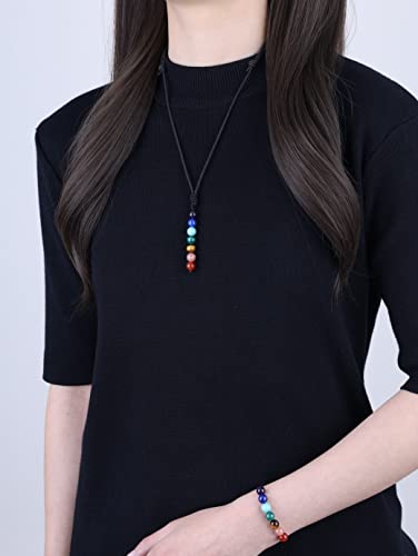 COAI Set Parure Collana Bracciale Regolabili con Pietre Sette Chakra
