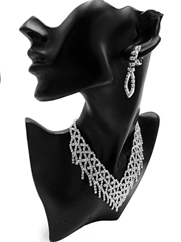 Parure collana con frage a girocollo e orecchini in strass pendenti