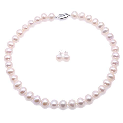 JYX - Parure composta da collana e orecchini di perle coltivate d'acqua dolce AAA 10-10,5 mm, colore: Rosa