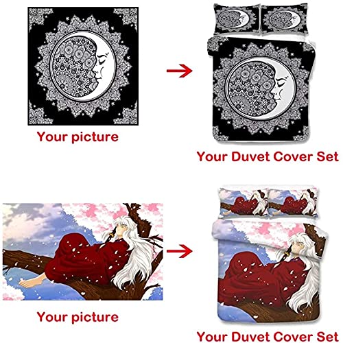 IL SET INCLUDE: Ogni set include 1 * copripiumino e 2 * federe. Qualsiasi immagine fornita può personalizzare il tuo set di biancheria da letto. Forniscici che l'immagine deve essere più grande di 1000 x 1000 pixel in modo che il copripiumino personalizzato sia più chiaro.