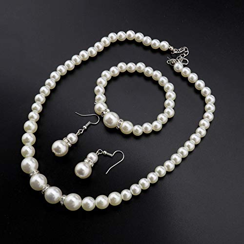D2D Parure formata da collana di perle, orecchini e bracciale, con cristallo, elegante, da sposa e damigella d'onore