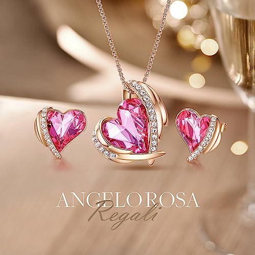 CDE Parure di Gioielli da Donna con Collana e Orecchini Cuore Cristalli con Scatolina per Gioielli