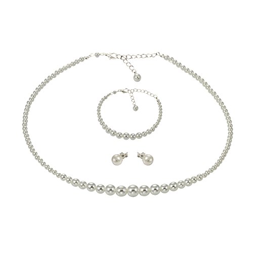 Parure di Gioielli Perle Bianco 0,8 cm Collana Bracciale Orecchini Placcato Argento